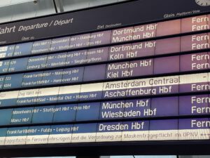Op station Duisburg ging het fout. De eerste ICE viel uit. De volgende ICE besloot ineens richting Berlijn te rijden. Foutje op de informatieborden op het perron. Daarna vielen alle ICE’s naar Amsterdam uit. DB gaf geen enkele informatie over alternatieven. Je moet het allemaal zelf maar uitzoeken (en proberen om te boeken).