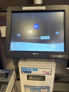 Vanochtend was het weer raak bij de Albert Heijn. De meeste zelfscankassa’s waren dicht. Volgens de dame die toezicht hield, omdat ze dan minder personeel voor de controles nodig hebben. Snap ik wel…