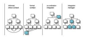 In the case of horizontal and lateral relationships, coordination and/or decision-making relationships are incorporated throughout the hierarchy. The emphasis shifts from a hierarchical connection to a horizontal connection between organizational units to realize rapid and improved coordination between organizational units. Horizontal and lateral relationships can be created employing informal communication, formal communication, formal teams, coordinators. and finally, the matrix organization. The implementation of these relationships places a heavier burden on the organization. Non-essential but excessive built-in mechanisms are regarded as annoying. A conscious choice is essential, therefore.