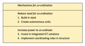 Increasing coherence, more severe market demands, and greater complexity require the incorporation of more and more radical coordination mechanisms that are designed to process exceptions as much as possible: permitting forms of logistics slack, creating autonomous logistics organizational units, investing in logistics ICT and the realization of horizontal and lateral relationships.