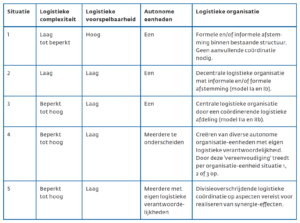 De volgende factoren bepalen de inrichting van de logistieke organisatie: