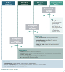 Klanten hebben behoefte aan maatwerk, ondersteuning en aftersalesservices, waarbij producenten bijvoorbeeld bij storingen direct, al dan niet op afstand, kunnen optreden. De snel voortschrijdende digitalisering maakt het bovendien mogelijk dat maakbedrijven zich buiten hun traditionele werkterrein begeven.